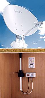 The Omnisat Semitronicis a semi-automatic system with an 80cm x 66cm diameter elliptical satellite dish, universal LNB, control box, cable and fixing accessories. The control box requires a 12/24V d.c. power supply to automatically raise the dish to the desired azimuth (vertical alignment). Horizontal alignment is carried out manually by rotating the 'through the roof' mast